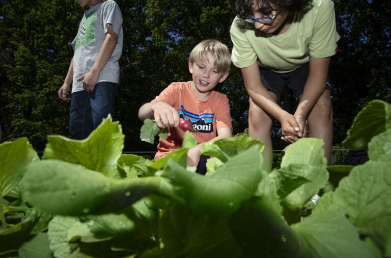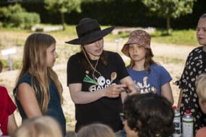 I 2026 huser skolehaven også forløb for børneinstitutioner, efter vi måtte flytte fra Storm P Pladsen i det, der tidligere var Haveselskabets Have. Det er lidt trangt og derfor en midlertidig løsning. Vi arbejder på at finde en ny lokation, så flest muligt af de nærliggende institutioner kan få et børnehaveforløb, der passer til de yngste.