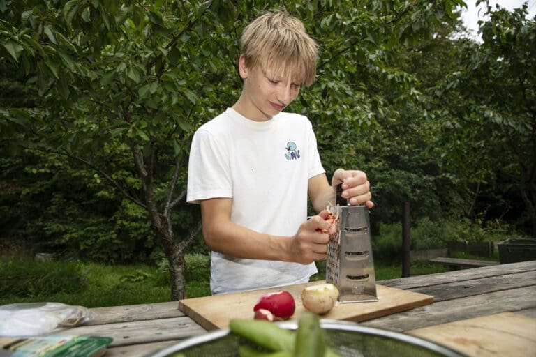 Mit hjerte banker for, at børn får oplevelser af at være vigtige, og at de kan bidrage i et praktisk fællesskab om dyrkning og madlavning. Jeg elsker, at mit arbejde følger sæsonen. I sommerhalvåret er der fart på med masser af børn, lugt af bål og jord under neglene hver dag. I vinterhalvåret er det en tid med mere fordybelse og planlægning af næste sæson. Noget af det bedste ved mit job er at opleve børnehavernes spontane glæde og begejstring over alt fra at se en lille, voksende spire til den underfulde opdagelse af farverne inde i en bolsjebede – eller af noget så enkelt som store sten. Jeg havde en gruppe, der blev så optaget af at finde meteorsten til en smuk stenhøj i deres have, at stensamling blev den dejligste – og vigtigste – tilbagevendende aktivitet i hele sæsonen.