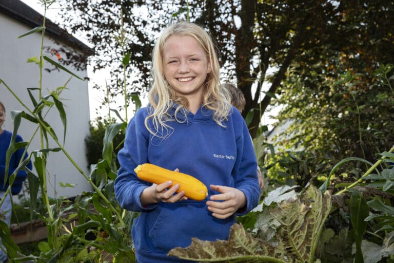 Slår du et smut forbi haven, møder du vores skolehavekoordinator Astid Baadsgaard Jakobsen: