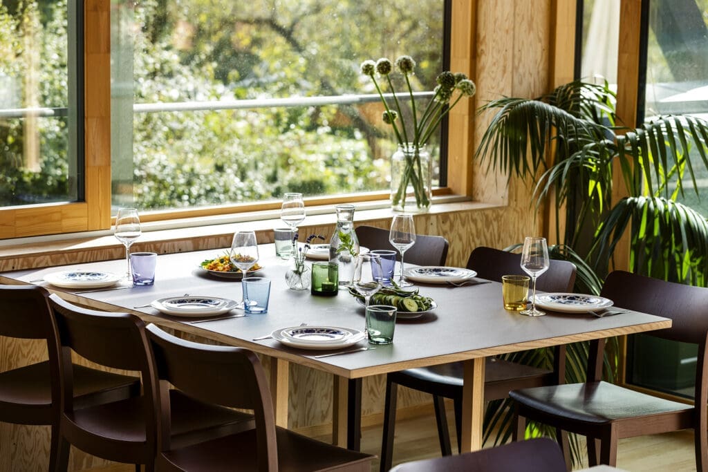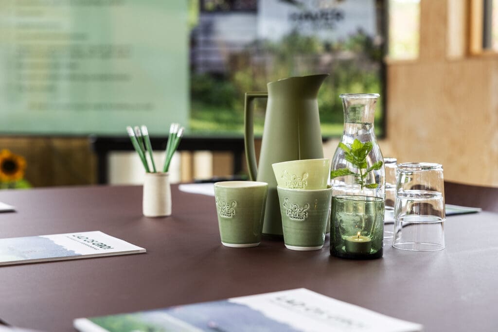 Økologisk kaffe og te i mødelokalet kan arrangeres efter aftale for 50 kr. pr. person. Skal I spise, har vi en fast aftale med Aamanns eller gode anbefalinger til andre leverandører af take-away med grøn profil, så I kan få leveret en god frokost eller middag.